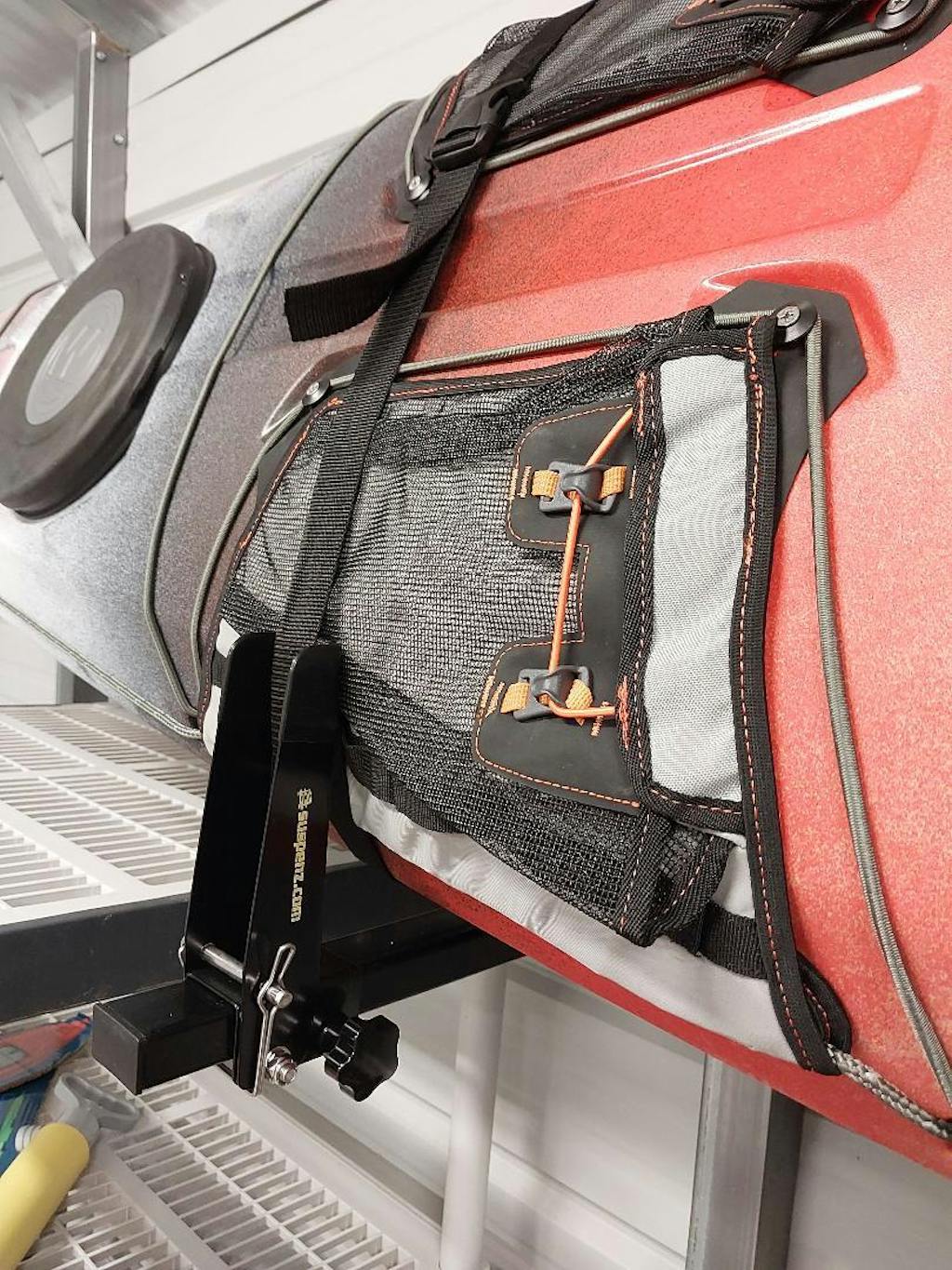 These are really outstanding kayak storage racks. Very simple to assemble/mount, well-made with solid materials and the perfect solution to store our 13.5 foot kayak. The fold-down portion and quick release straps securely hold the kayak during storage and make it super easy to slide the kayak out for removal. Suspenz staff were very friendly & helpful with our rack selections.