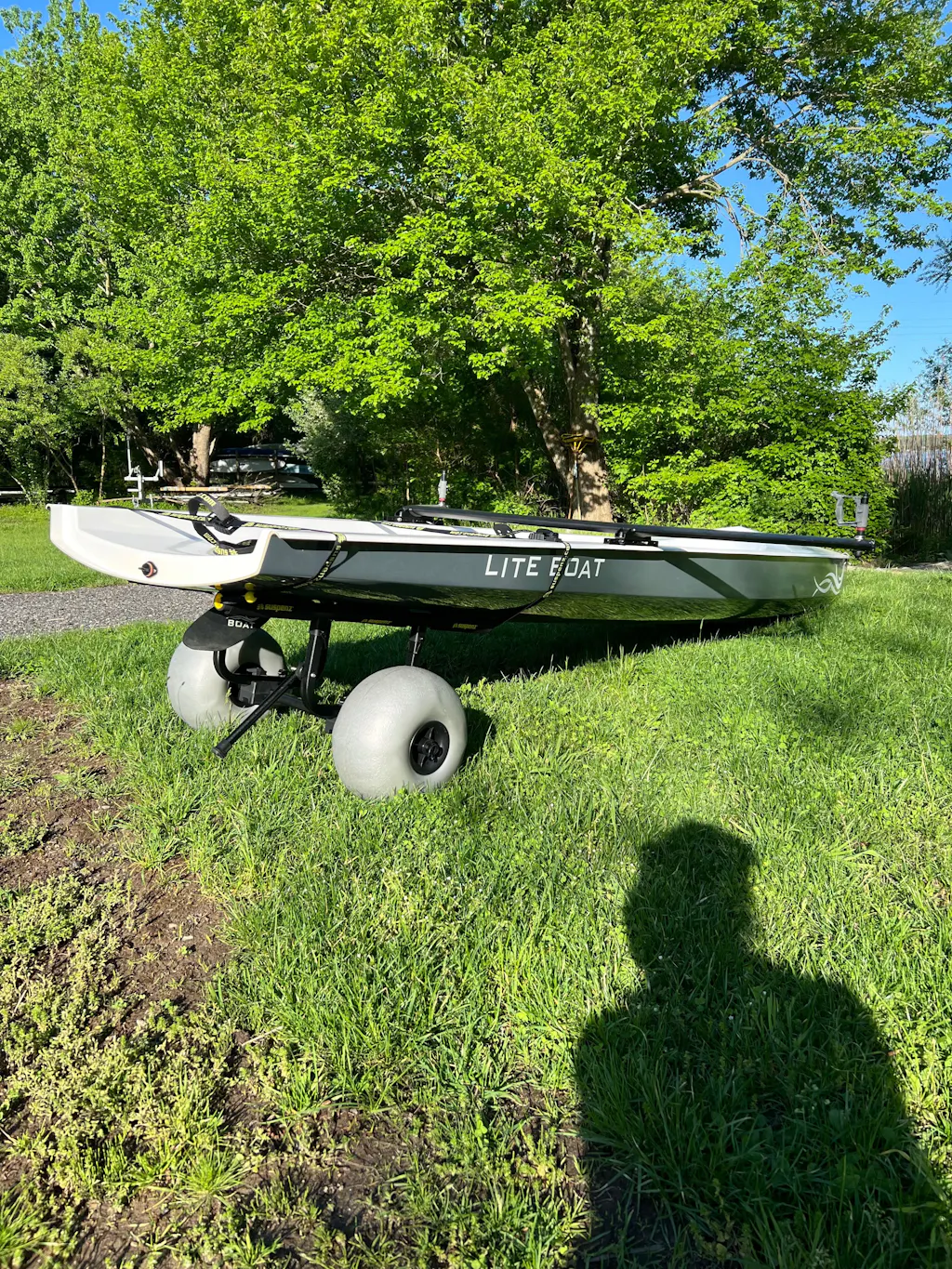 It always helps when you see a picture of what your boat looks like to know if it works with what you’re buying… I’m very happy to say this works very well bringing my heavy boat down to the water! I did have to bring it up about a 5 inch drop into the boathouse and it started to slide off the cart so make sure it’s buckled down really good!