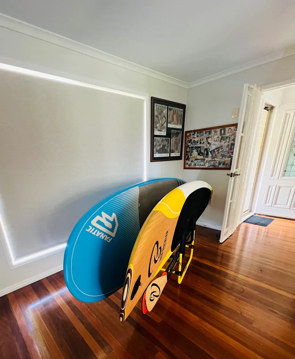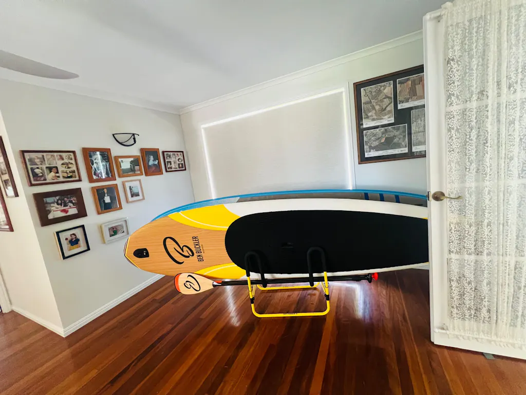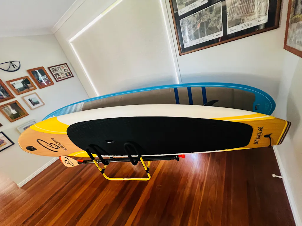 Received my double-up SUP stand today in Queensland Australia. Fast delivery & sealed package. Easy assembly & smart storage solution for two SUPs. Can make more compact on fin removal, but these a ready to go. Looks good & colour even matches the board😁